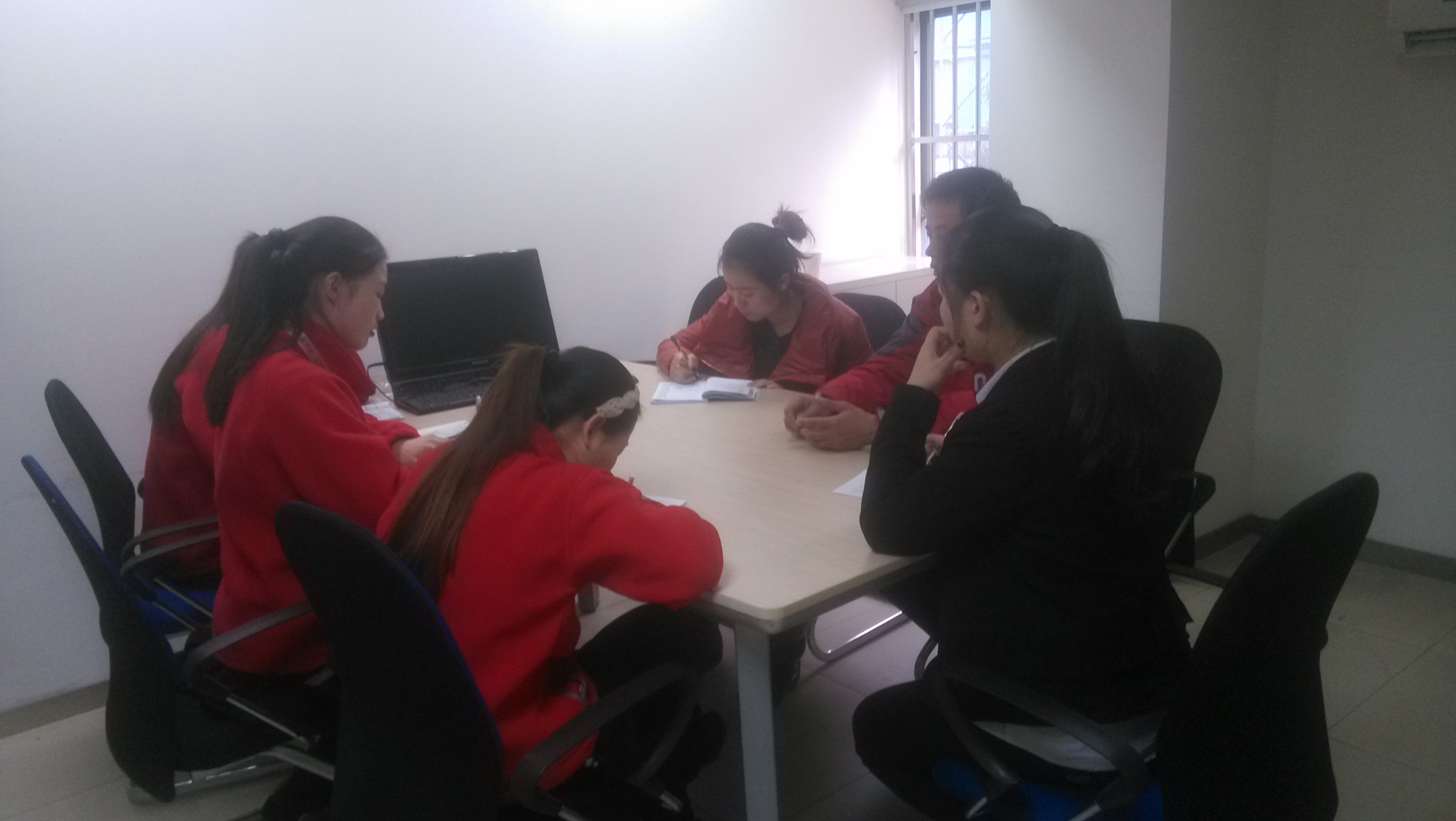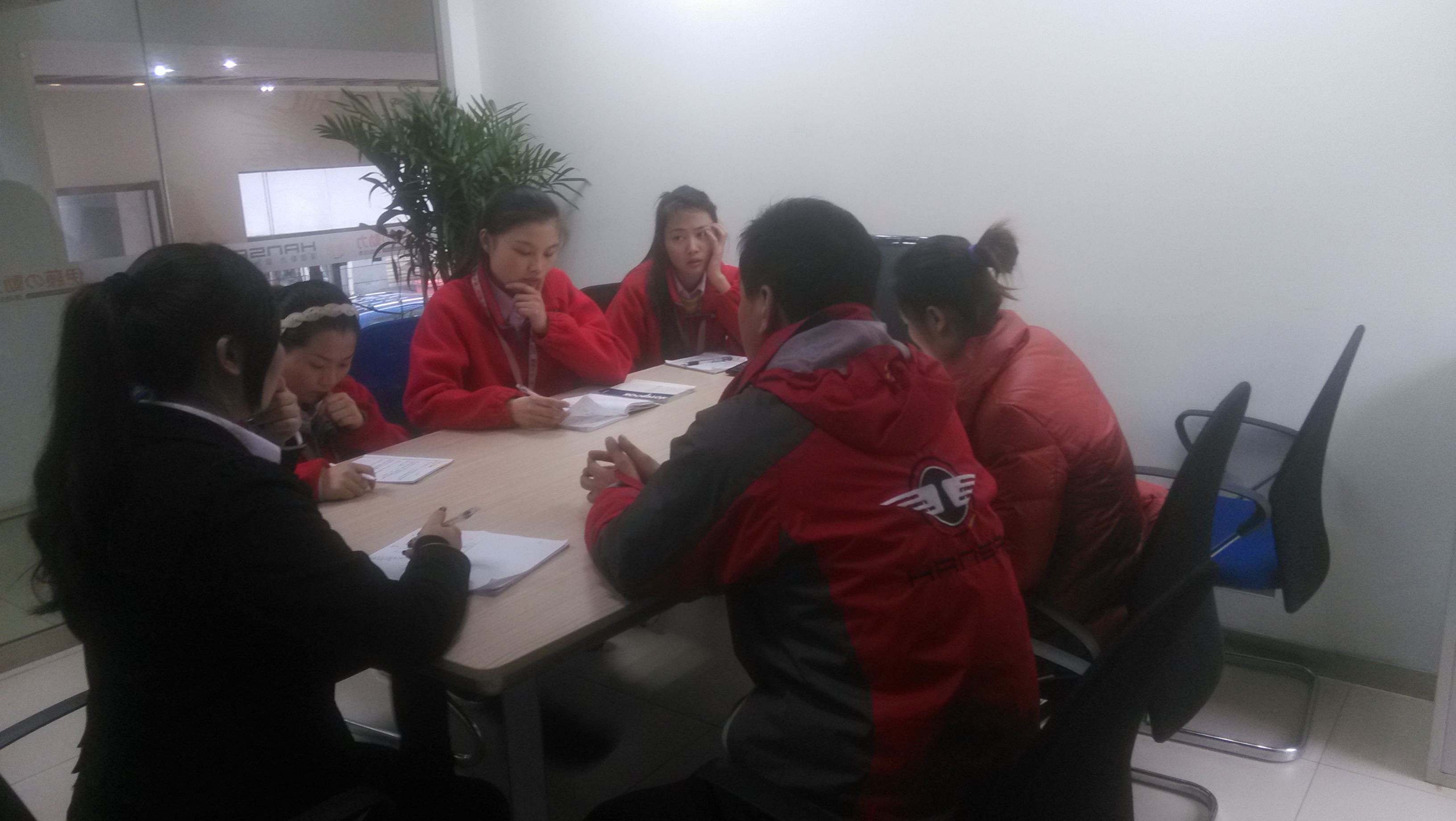 售后部陳經理及客服主管在給客服專員講解不懂的售后問題