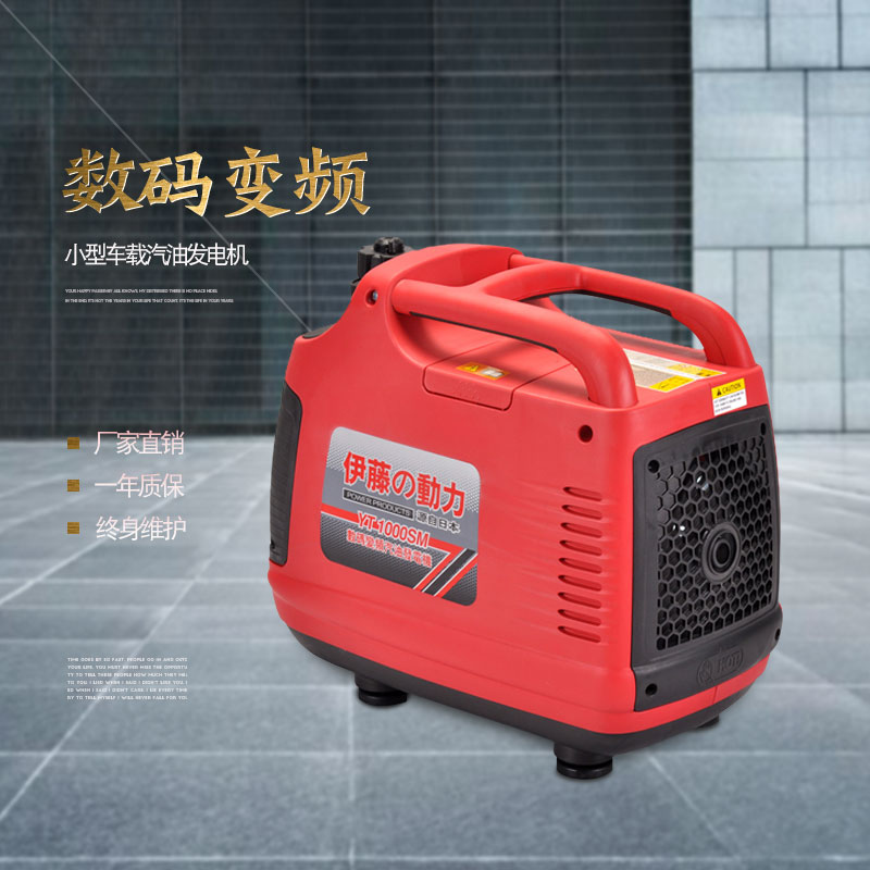 YT1000SM是伊藤1千瓦數碼變頻發電機/伊藤家用1000w汽油發電機1kw數碼機原價為3999現在拿起電話訂購只要3000.真的一難得一見的大促銷活動。所以看到的顧客都要抓緊了,真是時間不等人。1KW的數碼變頻發電機比較適合家用或者房車旅游,特別是現在十一長假,經濟基礎好的顧客,可以買一臺1KW數碼發電機放在房車上。