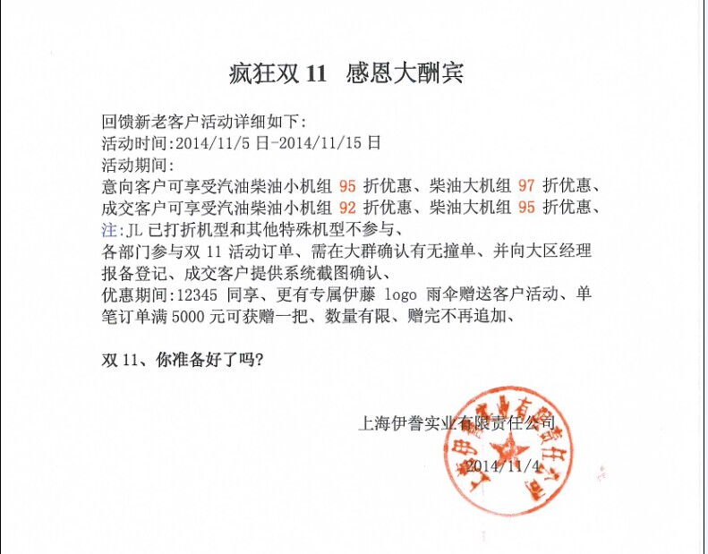 雙 11——伊藤發(fā)電機(jī)特惠活動(dòng)