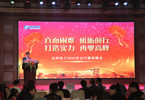 2015年12月31日,天河電子2016年元旦晚會(huì)在星光大酒店二樓場(chǎng)鑫軒隆重舉行,大會(huì)表彰了2015年度在公司市場(chǎng)、研發(fā)、工程等各個(gè)領(lǐng)域作出突出貢獻(xiàn)的優(yōu)秀團(tuán)隊(duì)和個(gè)人。公司總經(jīng)理苗立在會(huì)上做了重要講話,總結(jié)了2015年我們所經(jīng)歷的挫折與喜悅,分析了2016年的行業(yè)市場(chǎng)形勢(shì),并提出2016年我們的工作目標(biāo),那就是進(jìn)一步強(qiáng)化“三個(gè)意識(shí)”,做好“三個(gè)堅(jiān)持”,著重做好“三項(xiàng)管理工作”,做好“三個(gè)引進(jìn)工作”,實(shí)施“三個(gè)打造”,全面提升公司綜合實(shí)力,把握機(jī)遇,力爭(zhēng)使公司2016年經(jīng)營(yíng)業(yè)績(jī)創(chuàng)歷史最高紀(jì)錄 。